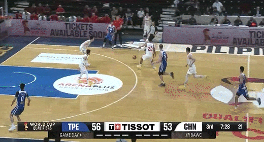中国台北一波8-0反超6分!中国男篮53-59中国台北