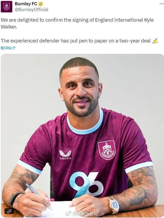 官方:伯恩利宣布从曼城签下了凯尔沃克,这名35岁的老将签下了一份2年合同。